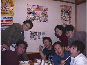 1998/12/23 朝10:30〜18:00まで高田馬場にて麻雀。 その後、渋谷「魚や一丁」さんで忘年会を開きました。 参加人数のべ19名。刺身・鍋・飲み放題で3500円という 異常な安さでした。超おすすめ。 ------------------------------------------------------------ [麻雀の部参加者] 20(日)10:30〜18:00 水島・ダン・下竹・槌谷・一号 ・古屋・代永・森山・しゅーいち [宴会の部参加者] 20(日) 水島・嫁1号・ダン・森山・代永 ・古屋・大森・下竹・槌谷・小林 ・原・高原・お竜・嫁2号・和泉 ・一号・進藤・(あ。名前忘れた・・・) ------------------------------------------------------------