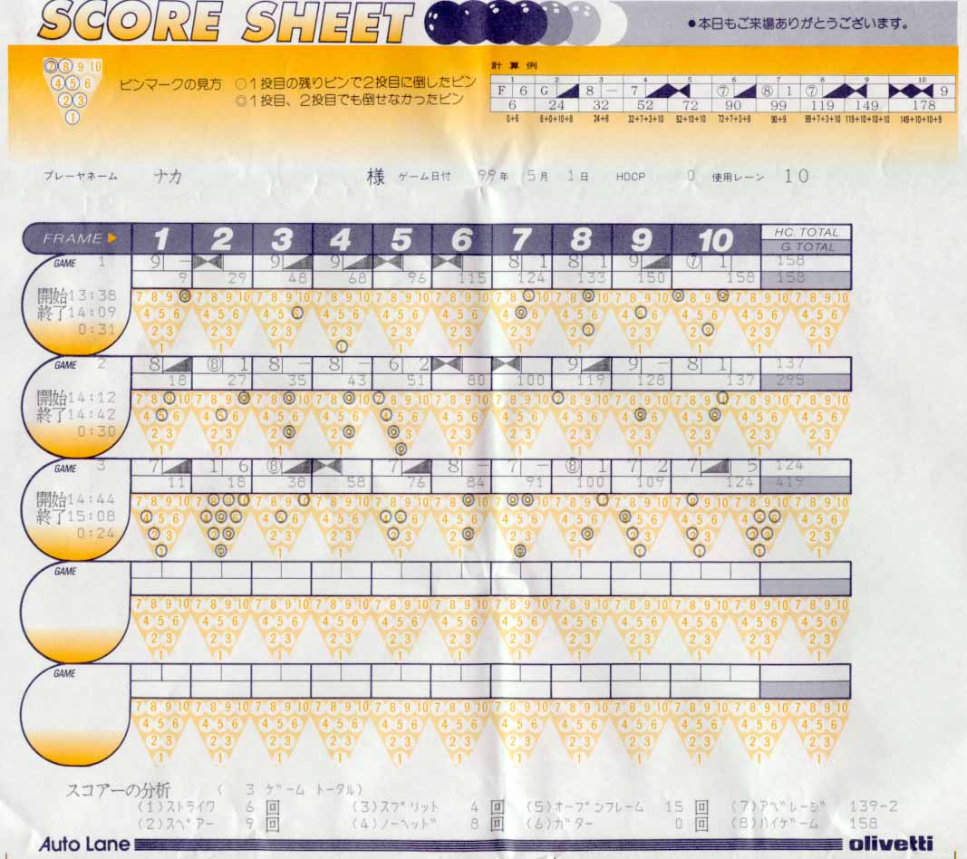 結局最終4ゲームも96というスコアをたたき出し、アベレージどころか1回も100を越えませんでした。